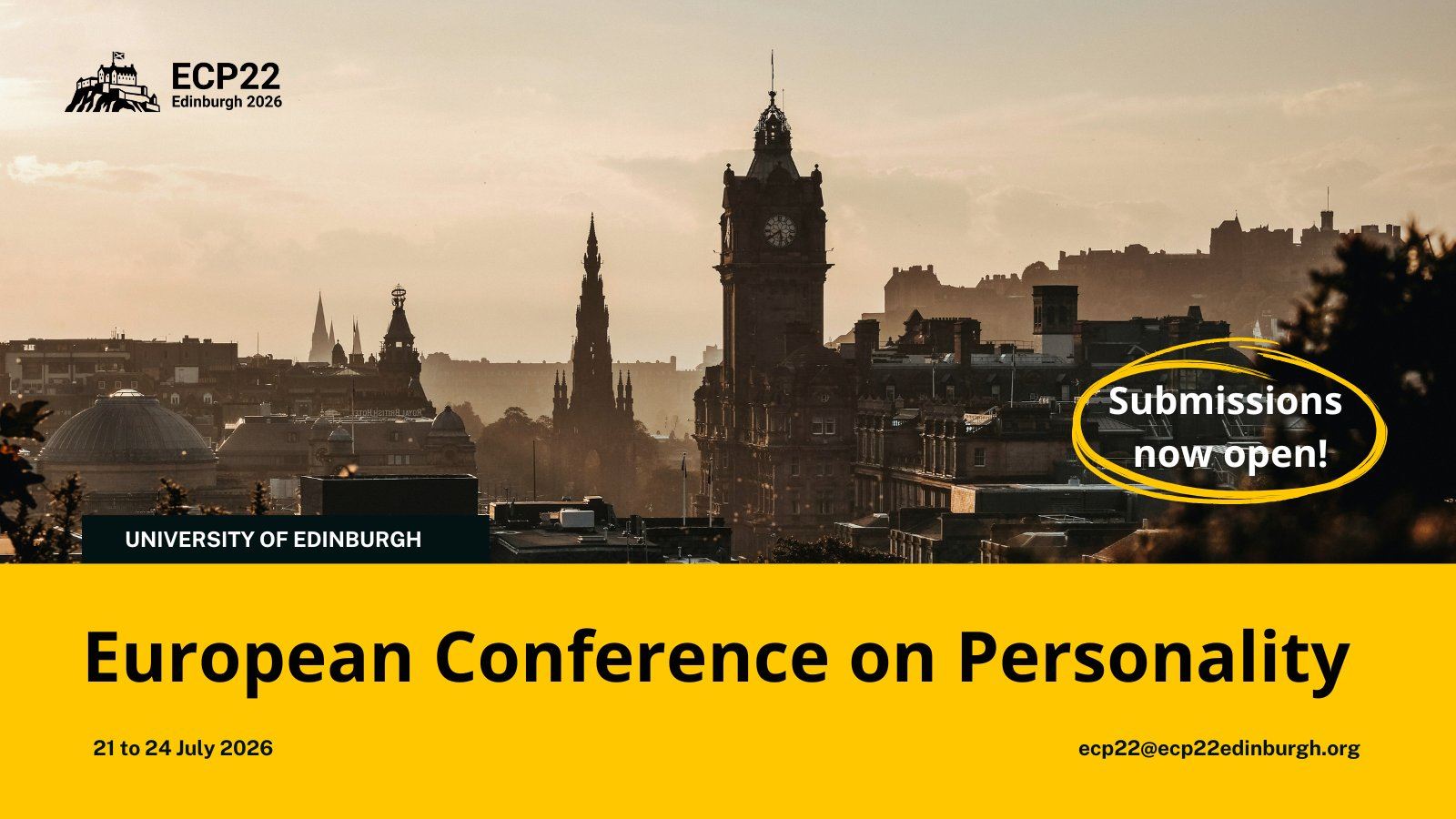Submissions are now open for the next European Conference on Personality (ECP22, Edinburgh, July 2026)! Deadline for submissions is 7th December 2025. [maxbutton id=”1″ url=”https://www.ecp22edinburgh.org/submission” text=”SUBMIT HERE” ] ...
